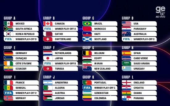 Grupo A: México, África do Sul, Coreia do Sul e Repescagem da Europa D (República Tcheca, Irlanda, Dinamarca ou Macedônia do Norte)